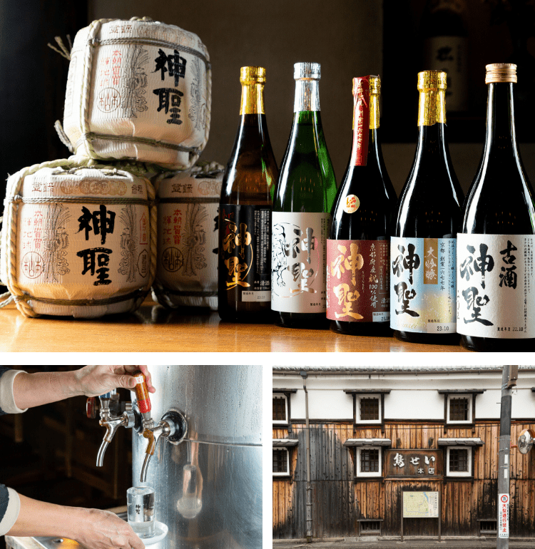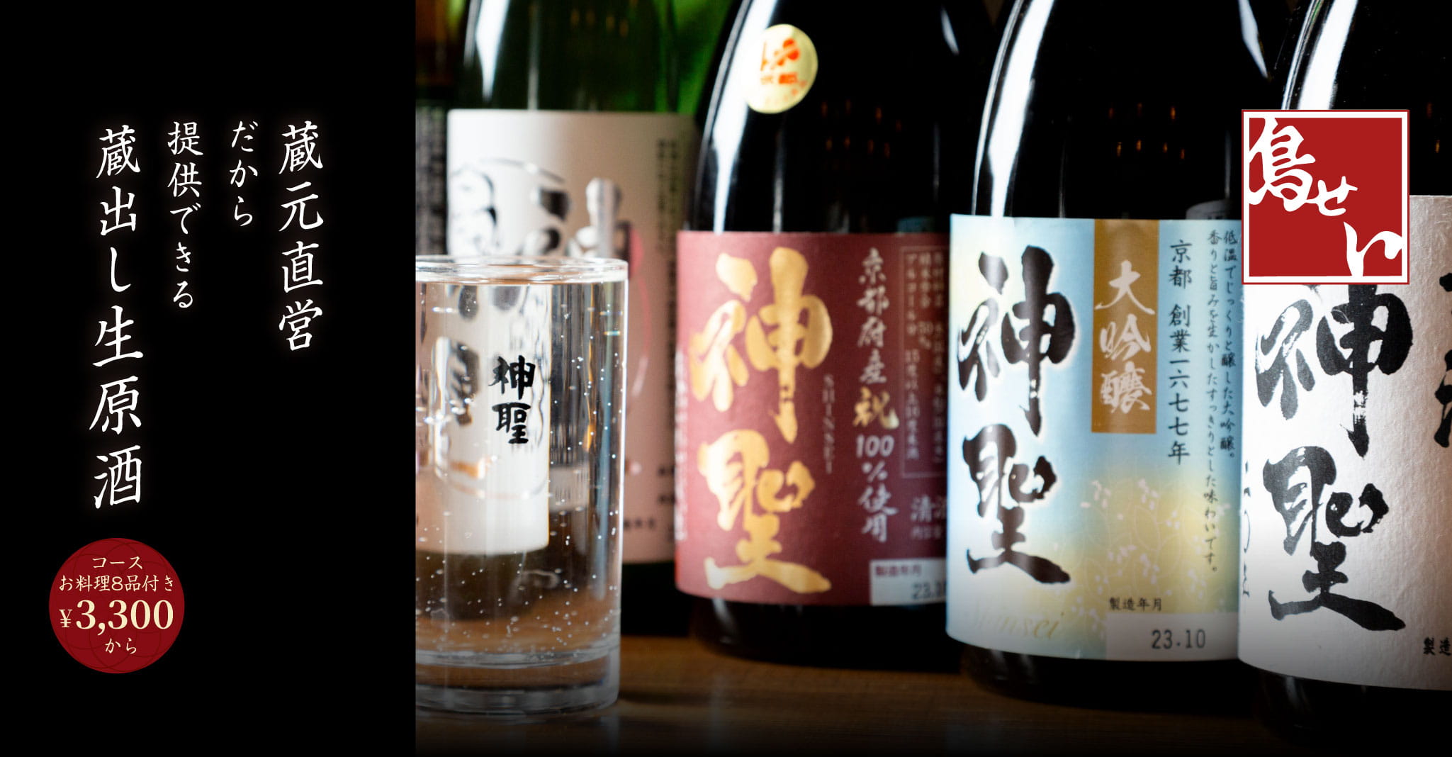 伏見の町並みに佇む酒蔵を改装した趣ある空間で、蔵出し生原酒をはじめ、毎日直送で仕入れる新鮮な銘柄鶏の串焼きや鶏刺し(冬季限定)をご用意しています。ここでしか出会えない、伏見ならではの贅沢なひとときをお過ごしください。
