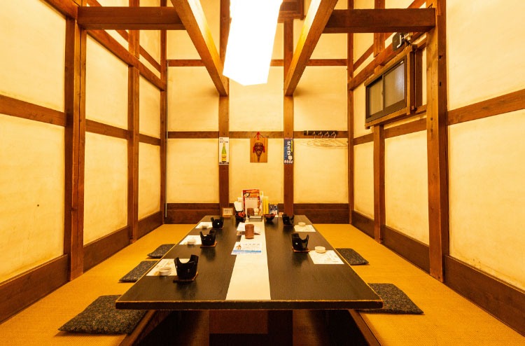 蔵を改装し、完全個室の掘りごたつ席としてご利用いただけます。重厚な扉の奥に広がるお部屋は長い歴史を感じられる落ち着いた空間で、4~8名様での酒蔵コース6,800円のご予約時のみご案内が可能です。特別な日のお食事会にもぜひお選びください。